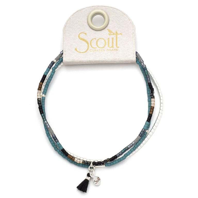 - Scout Curated Wears 3-bracelet set features semi-precious beads and silver-plated brass beads on a stretch cord.