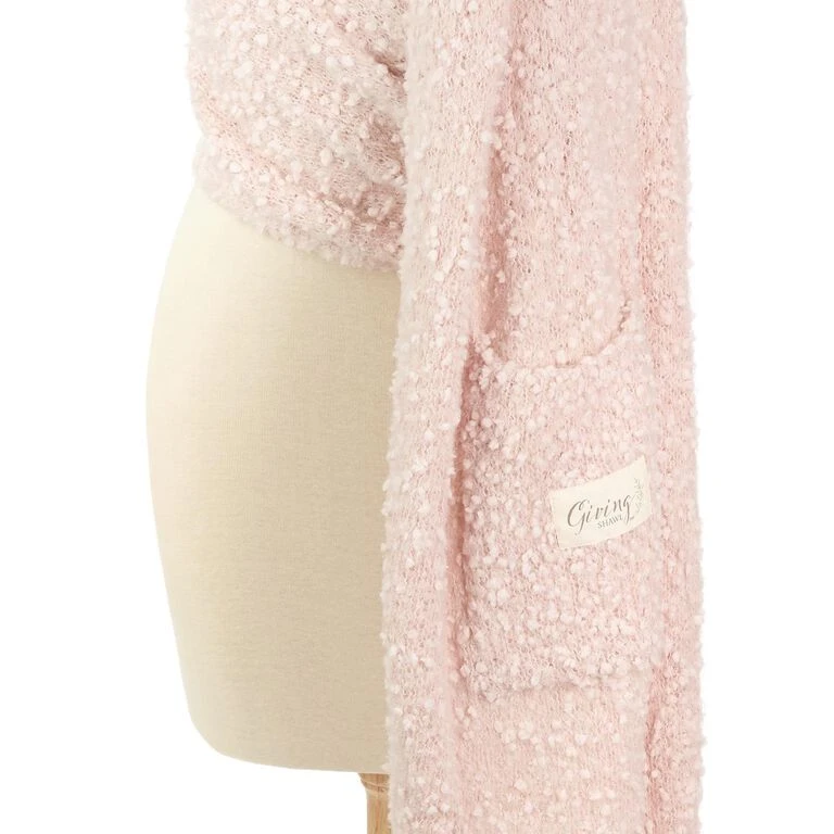 Give this cozy and sumptuously soft shawl to a friend or family member as a reminder of your love when you can’t be there to give them a warm hug in person. This dusty pink-toned nubby nylon shawl includes pockets to hold small items like a phone, tissues or eyeglasses. Packaged for gifting, this snuggly wrap also includes a keepsake bookmark printed with a message of encouragement.